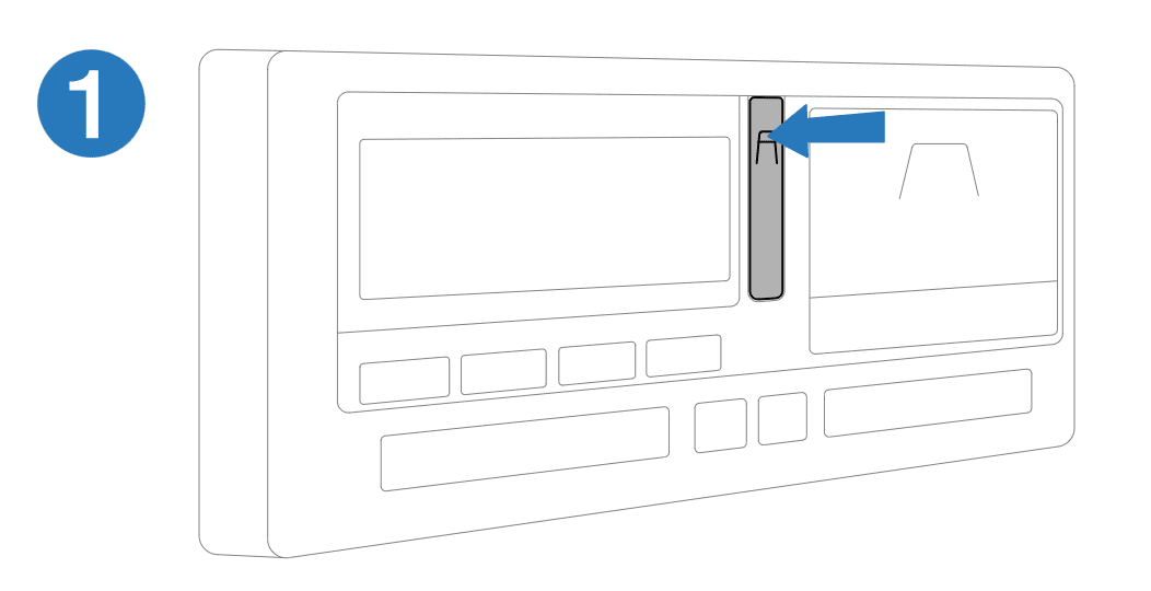 Pritisnite vrhom prsta oznaku na poklopcu konektora tahografa kako bi ga otvorili. |