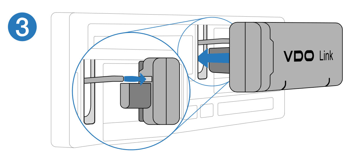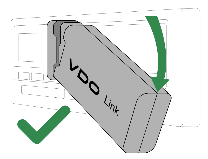 Lagano umetnite VDO Link u konektor. Poklopac konektora ima predviđen utor na tijelu VDO Linka. |